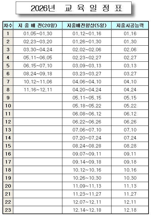 최고의 시설과 훈련장비로 최적의 교육환경을 제공합니다.